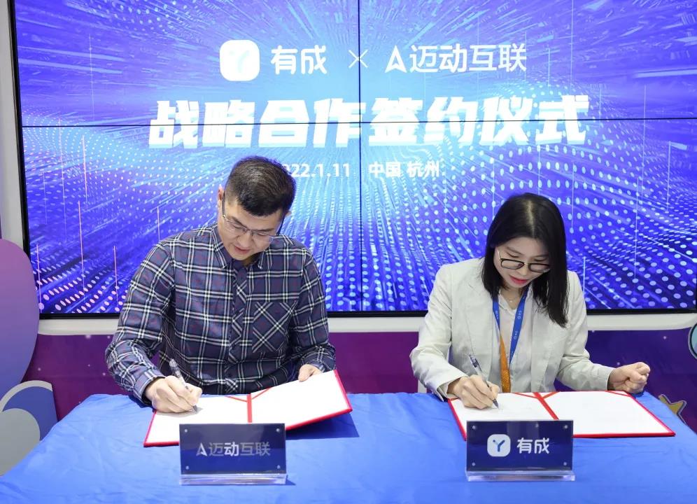 ▲左起:迈动互联总经理董泓廷、BG大游集团科技有成事业部负责人夏雪